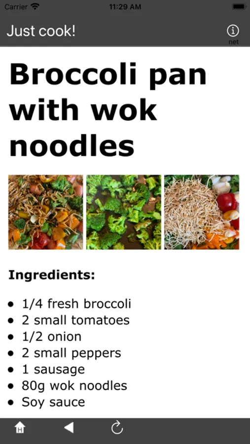 - Detailed view, 3 pictures, ingredients, preparation, price, time
