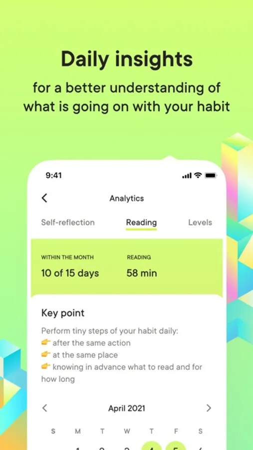 Do you lack motivation?! Practiqa includes an exciting system of inspiring levels and in-app tasks. Fulfill them all and get a reward! Learning 1 habit requires time and effort, so we divided the whole process into small steps and levels for better perception. And, of course, something intriguing is waiting for you after completing each of them! Moreover, your personal progress bar is always displayed on the home screen - no chance to miss a session of reading or exercising!