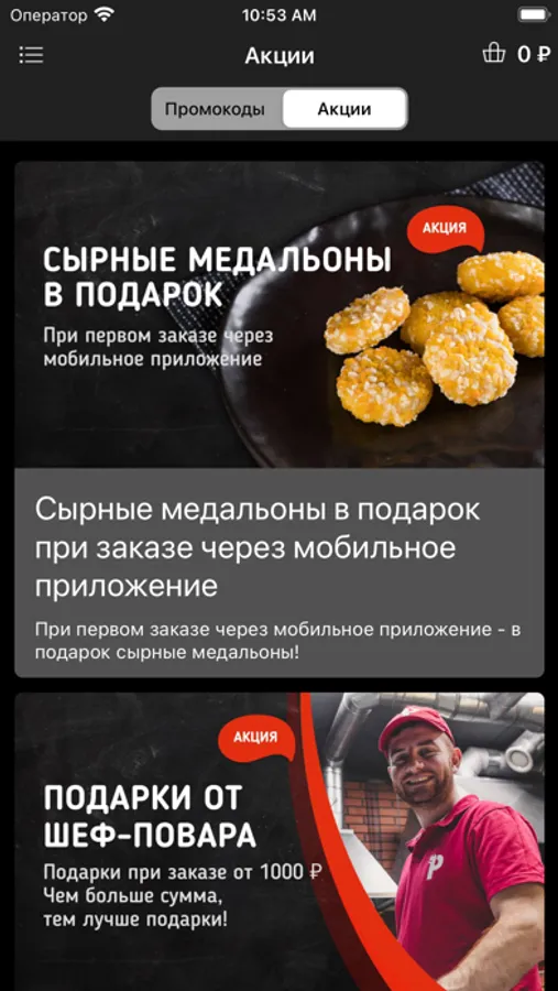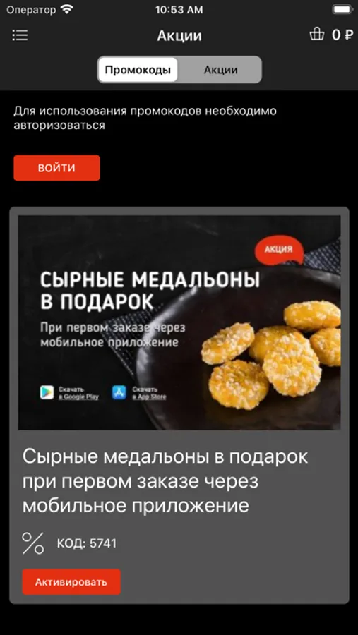 • Акции и промокоды в приложении