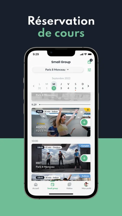 - Réservation de cours : Réserve tes séances small group et tes Training Xperience