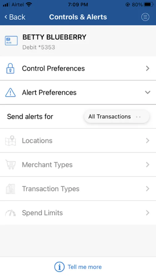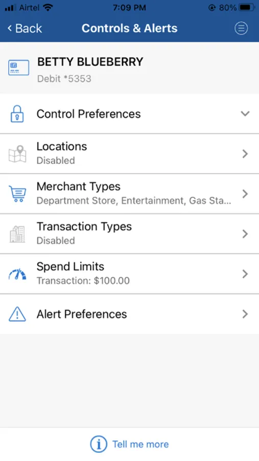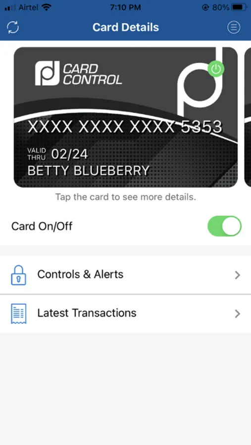 Allows a cardholder to control how, where and when their debit card is used via their mobile device. Turn your card on or off with a touch of a button, set location based controls, block international transactions and set spending limits.