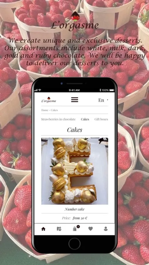 We create unique and exclusive desserts. Strawberries coated in chocolate with a refined taste and a refined design. We work with the best chocolate producers from all over the world to take you on a journey into the world of gastronomic pleasure, we have personally tasted all our products to select only the best. Our assortments include white, milk, dark and ruby chocolate. Delicious fresh strawberries from the garden are delivered to us from French farms for your pleasure. For special events, we create personalized cakes with numbers and / or letters. Made exclusively taking into account all the trends of good nutrition: gluten free, sugar free and gelatin free, using almond or coconut milk.