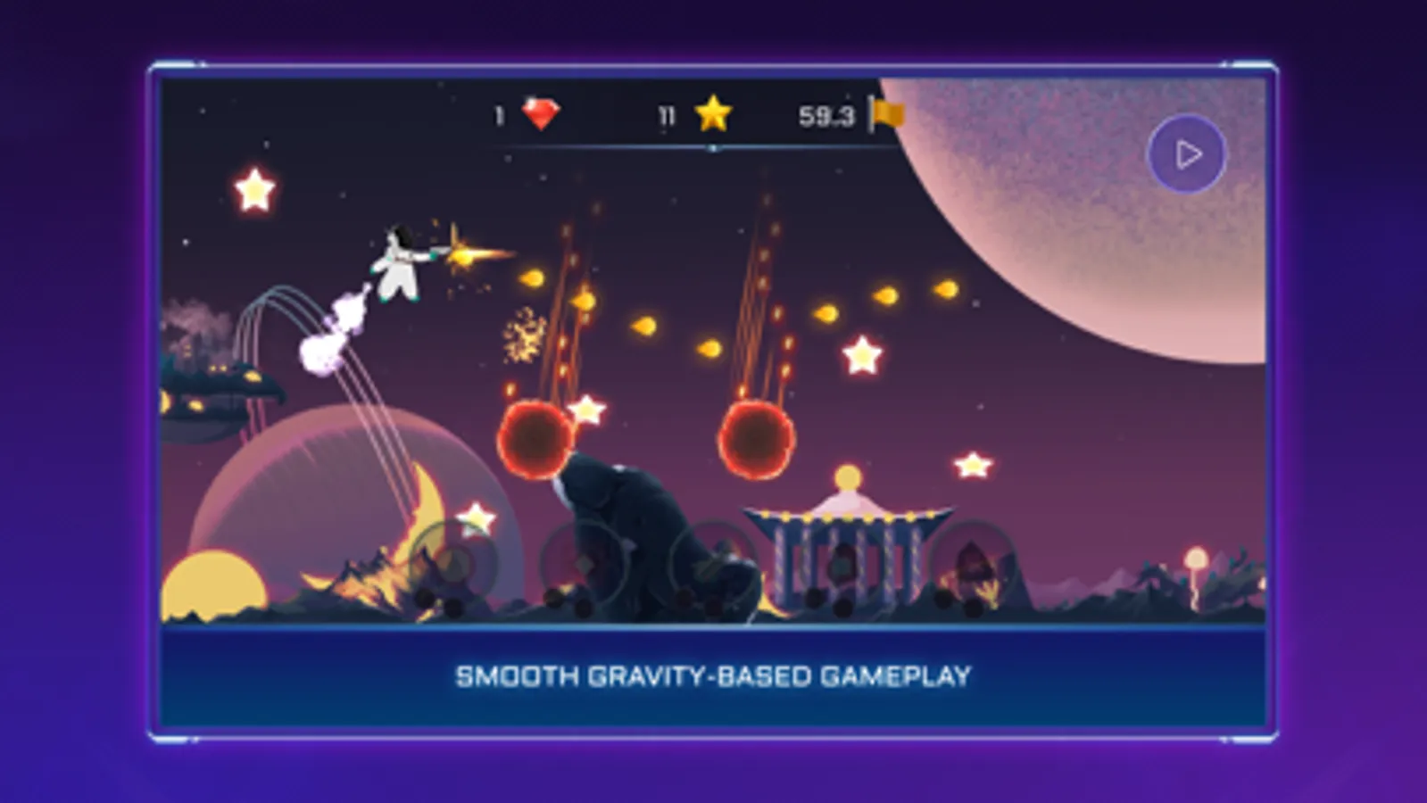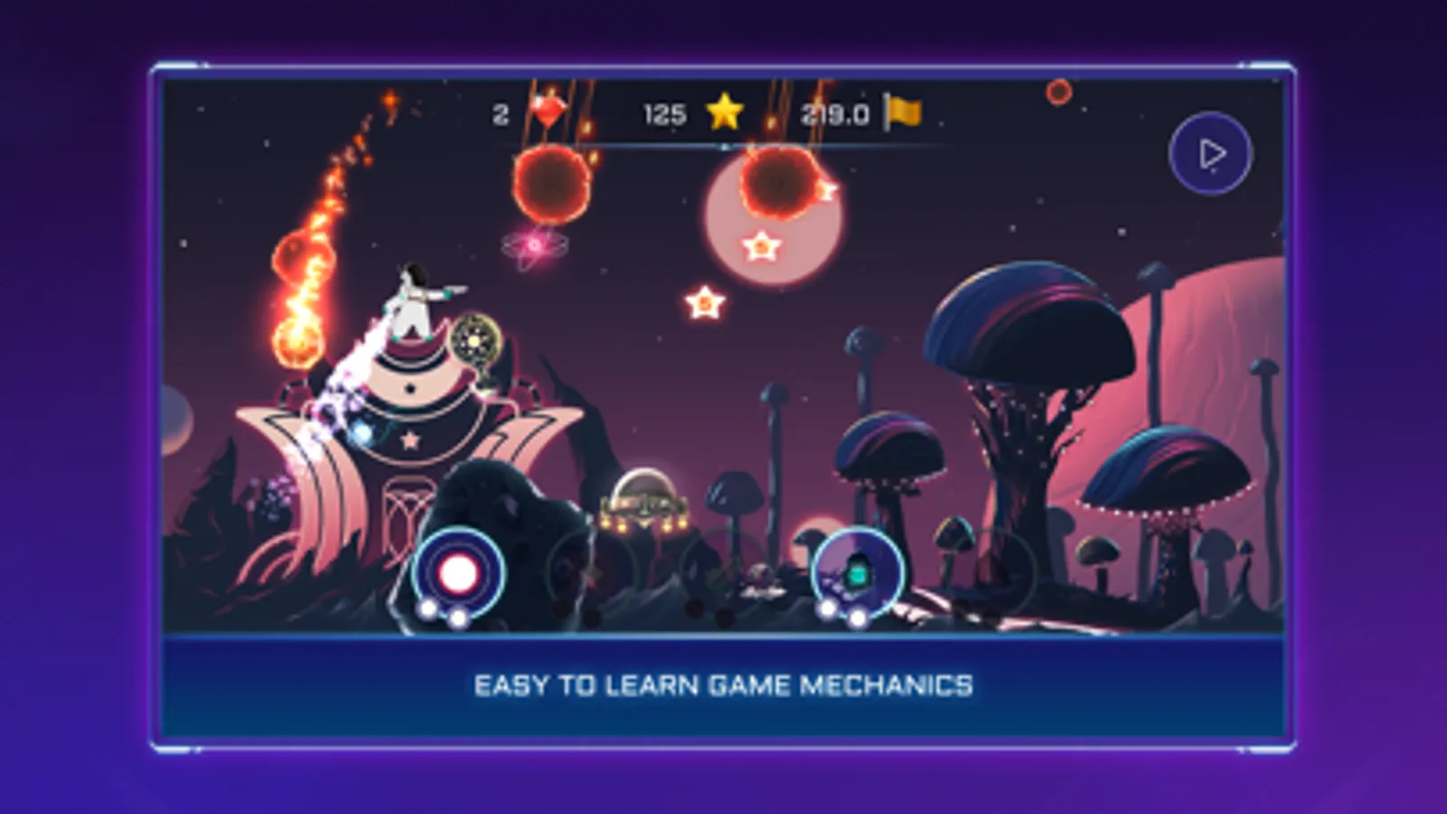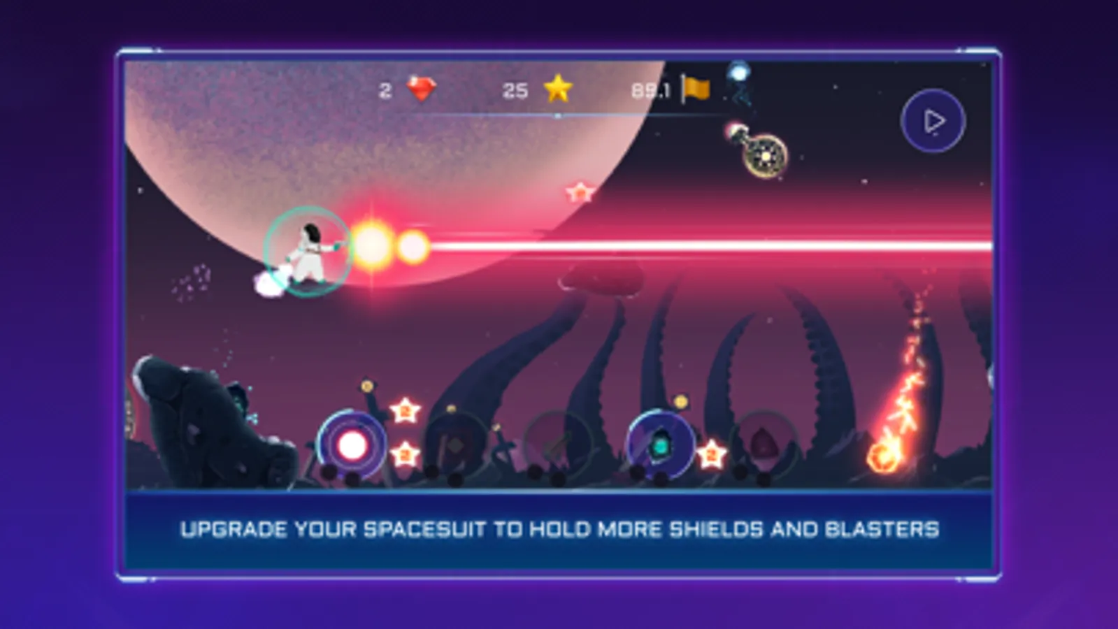 Use your jetpack to avoid all obstacles, shoot down UFOs using your epic weapon creating open fire. Explore the universe capturing the best photos for your collection!