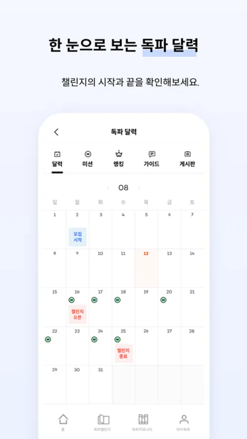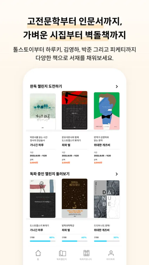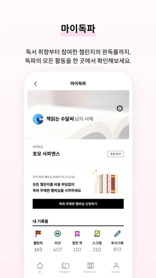참여한 챌린지, 챌린지별 완독률, 내가 남긴 기록을 한눈에!