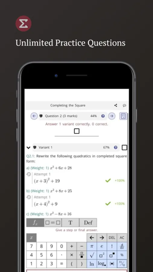 Unlimited Practice Questions: Keep busy with authentic questions in a wide range of complex formats for advanced STEM subjects – including formulas, matrices, arguments, graphs, and more – are reliably evaluated by our technology.