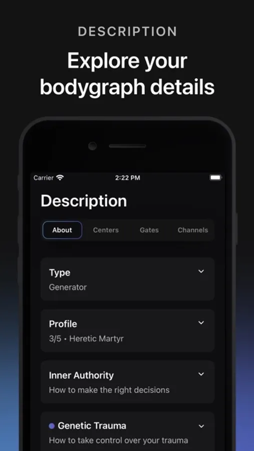 • Get detailed Bodygraph “Human Design Charts”. Nebula Astrology, iChing, Oracle spiritual, Palm Reading, Numerology, Chakras, Zodiac, My Human Design Apps, Kabbalah and Tarot