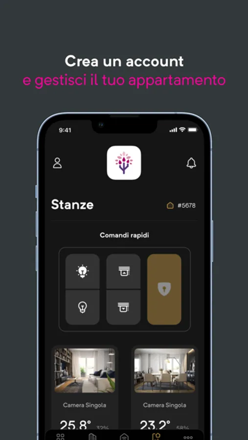 Attraverso la App Titiro è possibile governare l’intera domotica dell’appartamento: luci, tapparelle, climatizzazione, antifurto, scenari e grazie ad una personalizzazione massima ogni condomino può inserire qualsiasi elettrodomestico o impianto collegato alla rete.