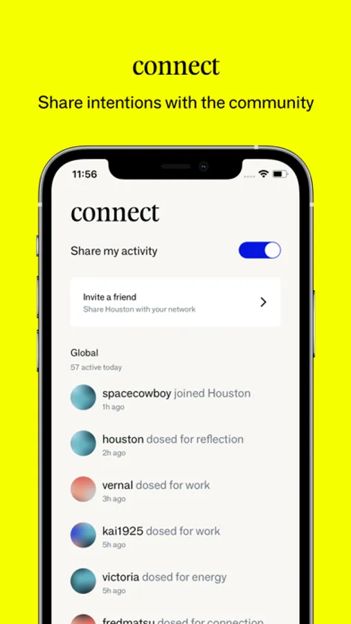 A user-friendly microdosing tracker. Houston is a wellness companion to the practice of microdosing (taking small doses) of supplements like functional mushrooms (like Lion’s Mane and cordyceps), cannabis and B vitamins, to improve mental well-being, creativity, focus, energy, and more. Where allowed and available, microdosing is also practiced with psychedelics.