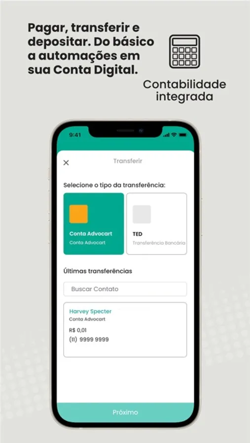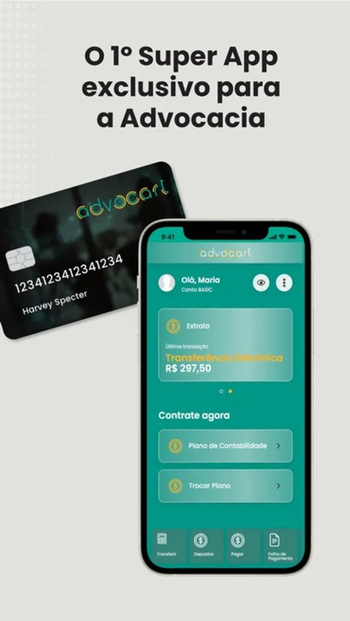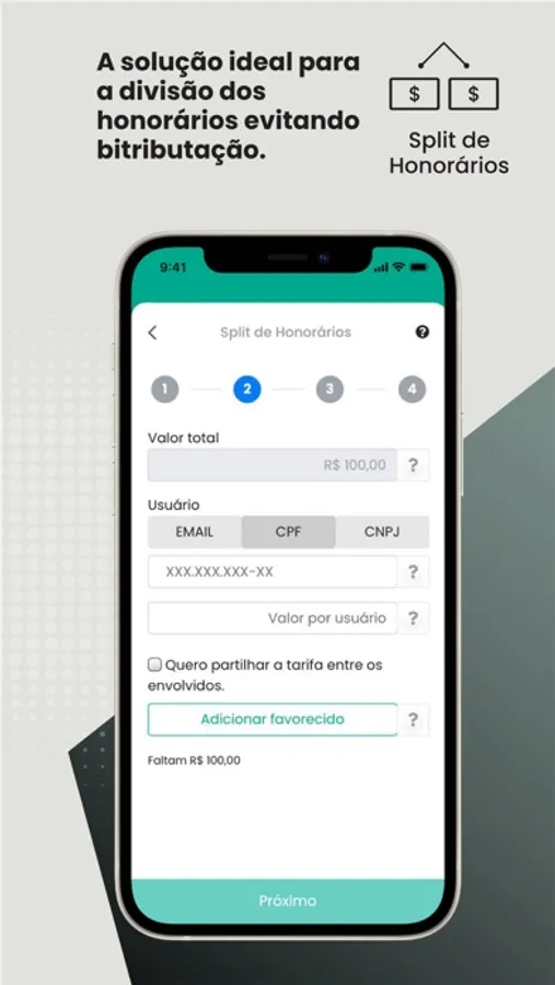 O SuperApp traz serviços financeiros exclusivos para o segmento advocatício. Estão disponíveis funções financeiras inexistentes no mercado. Uma delas é o Split de Honorários, uma solução que agiliza o cálculo e evita a bitributação na divisão de honorários entre os profissionais.