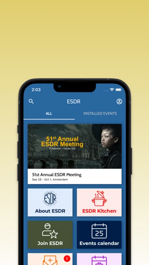 European Society for Dermatologica Research association mobile application. Stay up to date with the latest information about ESDR and access the current event mobile application(s).