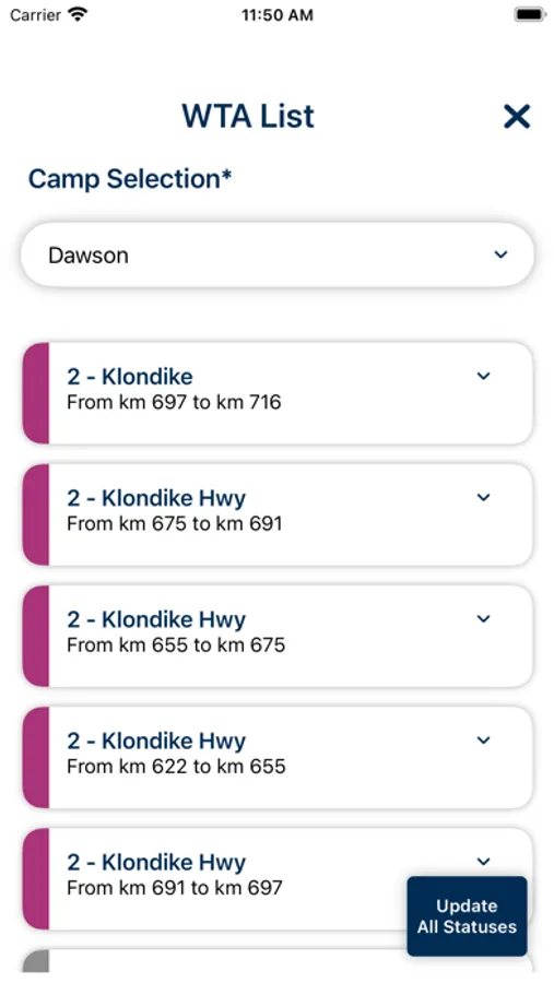 Yukon WTA is an application used by Yukon Government to view and update the Road Condition status for roads.