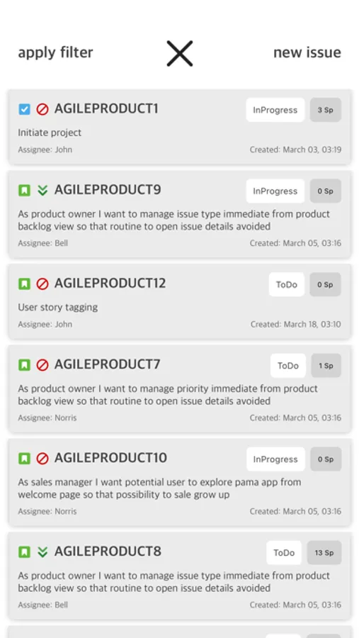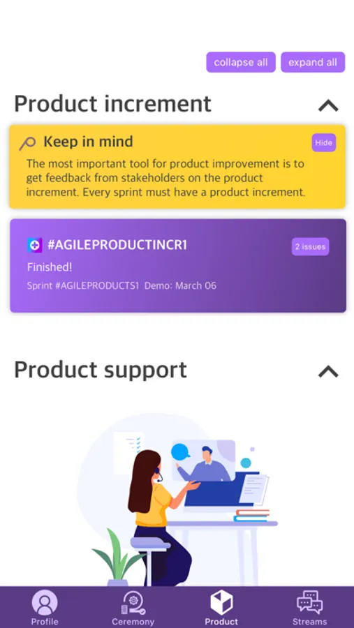 Our platform implements a full set of product artifacts and scrum tools, such as: user stories, tasks, subtasks, bugs, goals, product increments, sprints, kanban boards, sprint and product backlog management, test cases, support management.