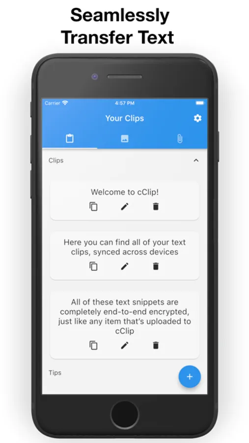 cClip is an easy-to-use and seamless text and file transfer agent built with fluidity and security in mind. cClip allows you to share any text or files through a completely encrypted storage medium. All of your information is encrypted, whether you use the intuitive and quick cClip Direct or you choose to upload to the cClip servers.