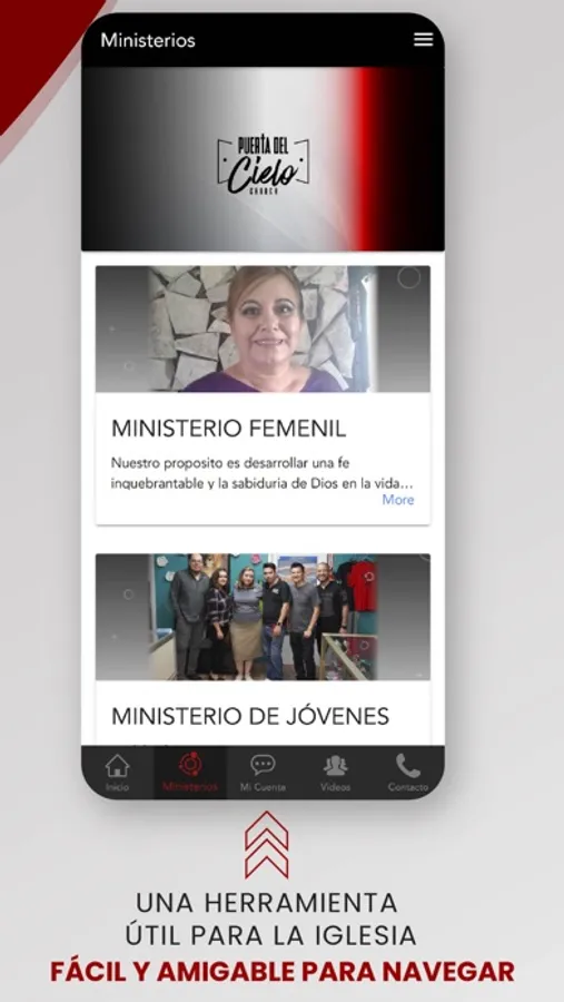 * Ver e interactuar con los eventos y ministerios.