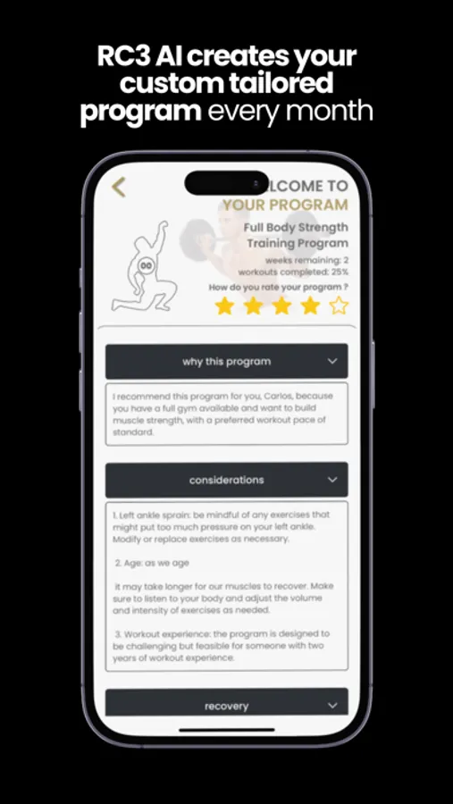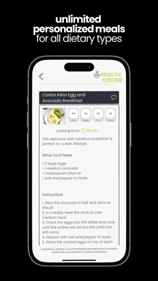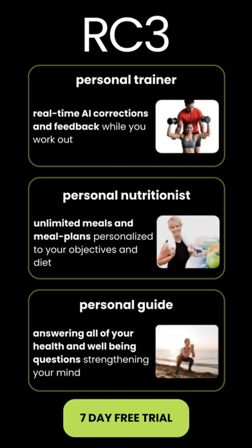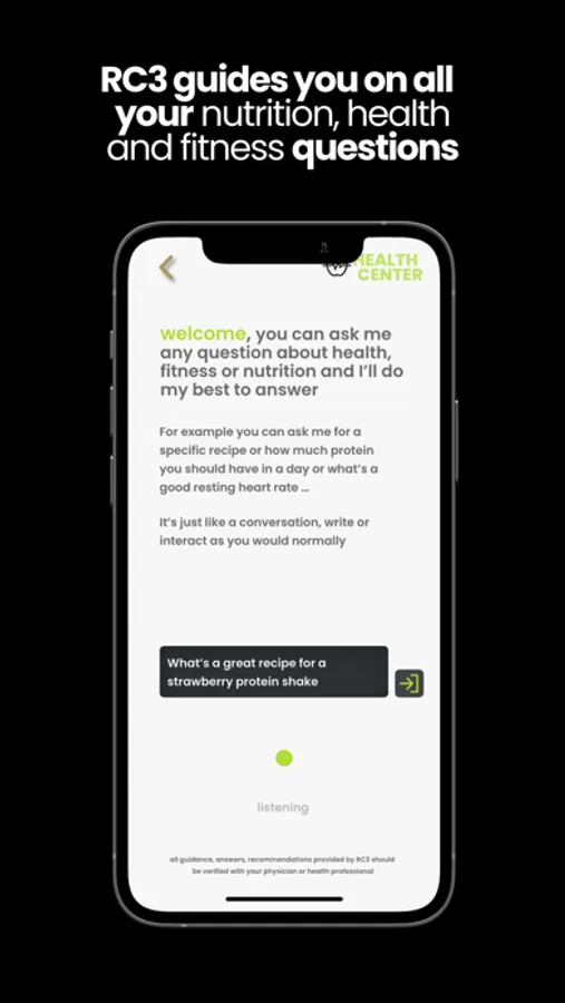 • Health, answers to your questions about fitness, health, nutrition at your finger tips powered by RC3's AI