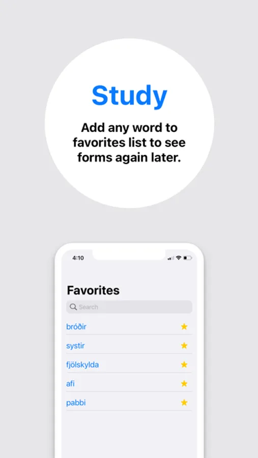 Snorrify will provide you more than 300,000 words with its inflectional forms based on the Database of Icelandic Morphology (DIM). It’s a big resource which contains many many words you need to study Icelandic! Special thanks to The Árni Magnússon Institute for Icelandic studies.