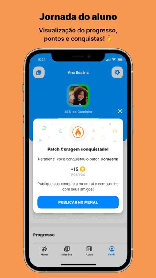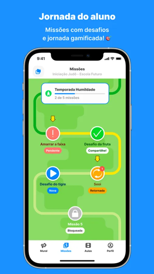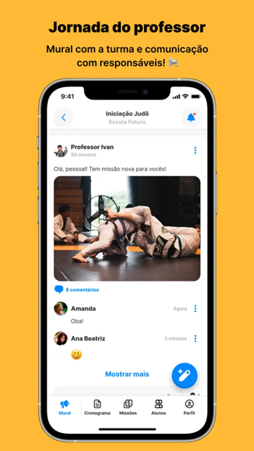 ● Mural com a turma e professor: interatividade, compartilhamento de publicações e missões