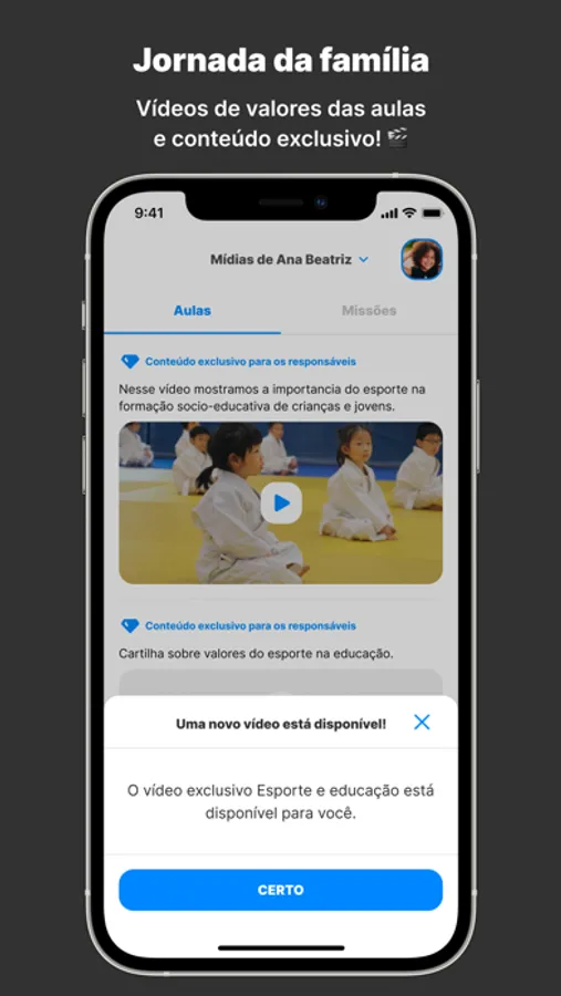 ● Mídias: Acesso aos vídeos de valores das aulas e conteúdos direcionados para famílias