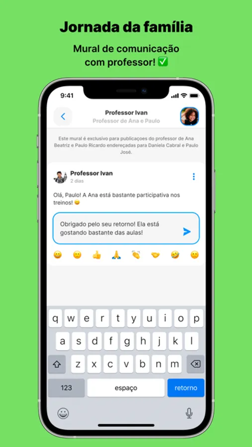 ● Mural com a turma e comunicação com responsáveis (interatividade, compartilhamento de publicações)