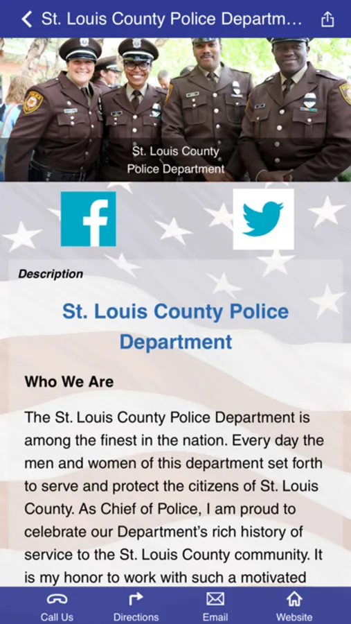 On behalf of the men and women of the St. Louis County Police Department, welcome to our app. This app is for the employees and family members of the St. Louis County Police Department as well as the community it serves. It contains information about our department as well as safety and crime prevention tips. St. Louis County Police Department employees will have access to a full range of wellness tools.