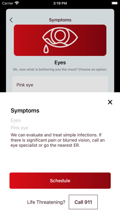 * Schedule a convenient urgent care visit at your home.