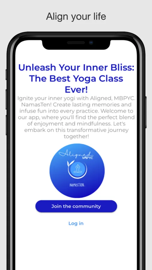 Welcome to Aligned. MBPYC. NamasTen. Elevate your yoga journey with our personalized app designed for busy professionals. Experience 10-minute daily practices, cultivate mindfulness, and unlock your inner potential. Join us now and embark on a transformative path to holistic well-being. Namaste!