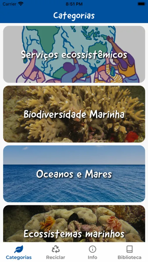 O Conectmar é um aplicativo de Educação Ambiental feito para levar conhecimento para crianças e adolescentes. Nele podemos encontrar artigos sobre meio ambiente feitos pelos nossos professores, livros grátis para download, últimas informações e a nova função de procura pelo ponto de coleta mais próximo de você!
