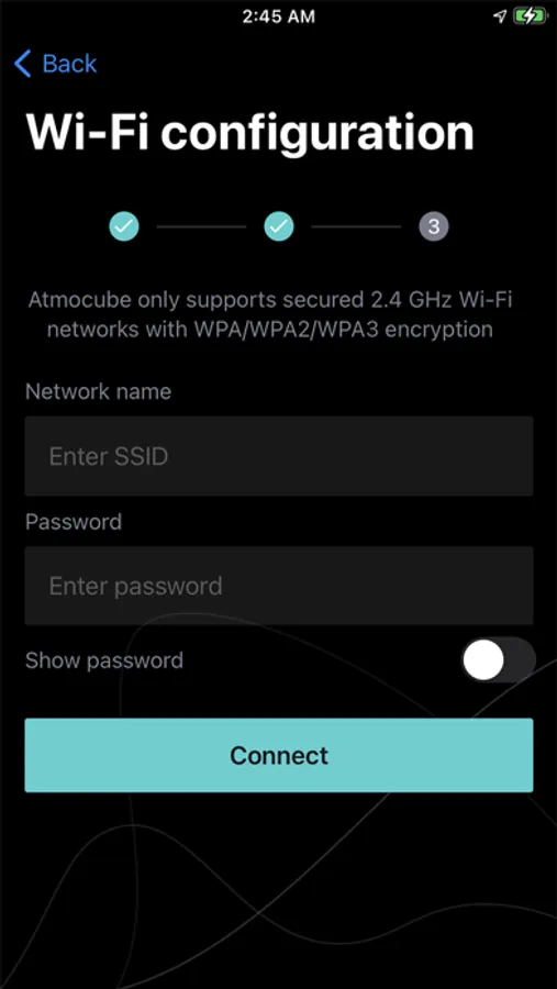Atmocube Wi-Fi setup Screenshots