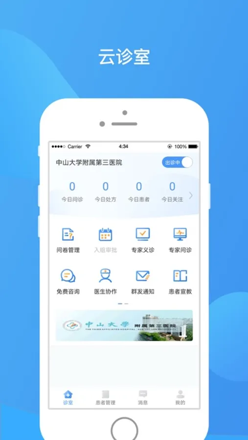 中山三院医生版App是医生的移动诊室,医生可以通过中山三院医生版App为患者提供在线问诊、健康管理、随访跟踪病情等服务。医生还可以通过积累患教文章,向患者传播科普健康知识、建立个人品牌。