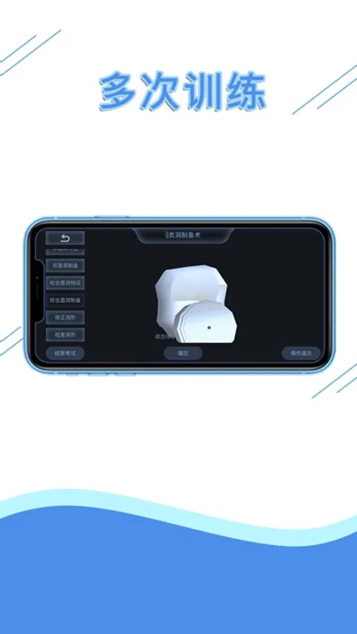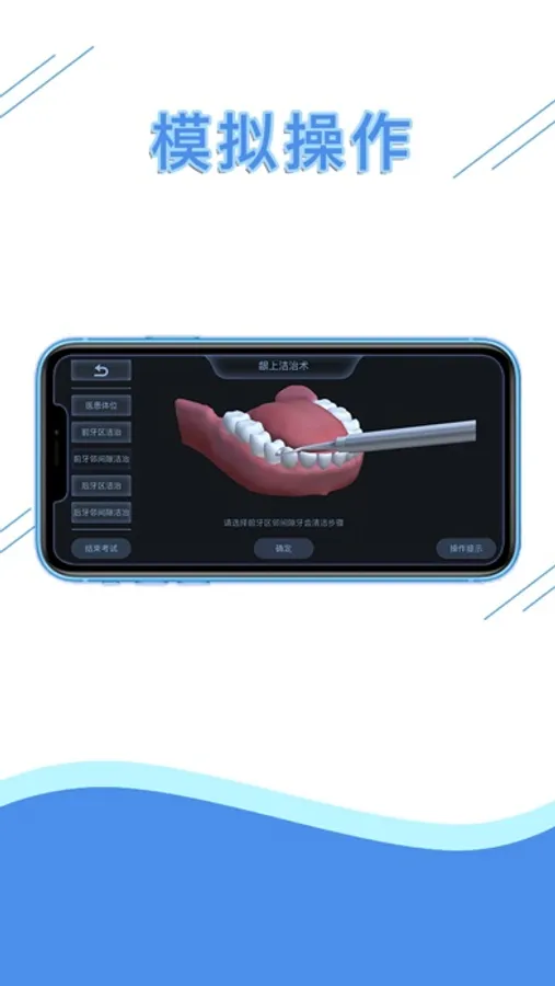 口腔技能模拟APP是一款将仿真模拟技术应用于口腔实践技能考试,通过步骤化、模块化口腔职业考试内容,使考生随时随地完成口腔执业实践技能的操作,熟悉口腔实践技能考试内容,帮助考生顺利通过考试的应用。