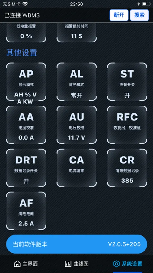WBMS 全新APP是沃力斯特智能电子设备(广州)有限公司全新升级软件,全新设计所有页面。新加实时曲线图和历史曲线图以及导出历史曲线表格数据。此APP 是适配全新的新版本库仑计,也可以兼容以前旧版本的库仑计设备。以前旧版本有的功能此APP 还是支持,旧版本上没有的功能此APP 上就不能显示和实现,敬请知悉!