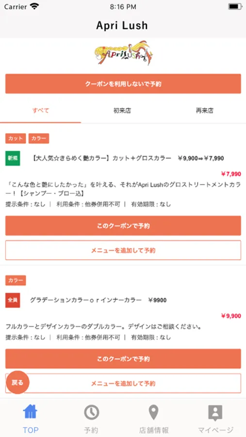 お得なクーポンが配信されます。ネット予約時にクーポン利用での予約も可能なので来店時もスムーズに施術頂けます。