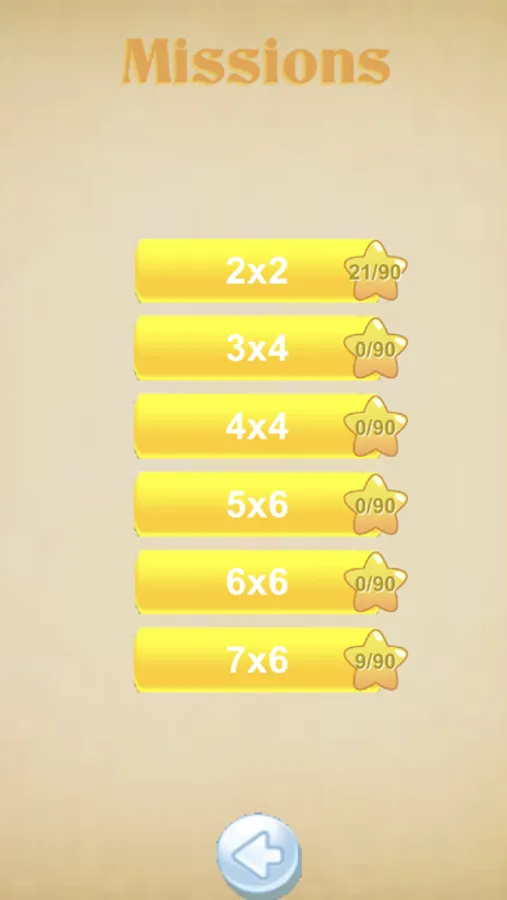 You can change the difficulty with different board sizes. 2x2, 3x4, 4x4, 5x6, 6x6 and 7x6. As you advance through the levels, you will have less time to complete them. 2x2 for example focuses on speed. Can you complete a 2x2 board in 3 seconds?