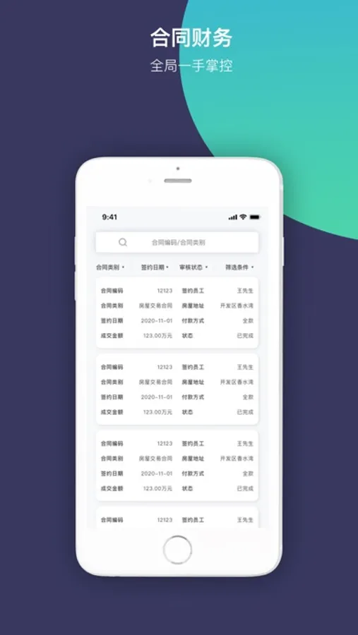 是一款房产公司移动办公的管理应用,有房源登记、房源管理、客源登记、客源管理、行程打卡、考勤管理、工作量化、合同财务、房源采集、业绩量化等功能