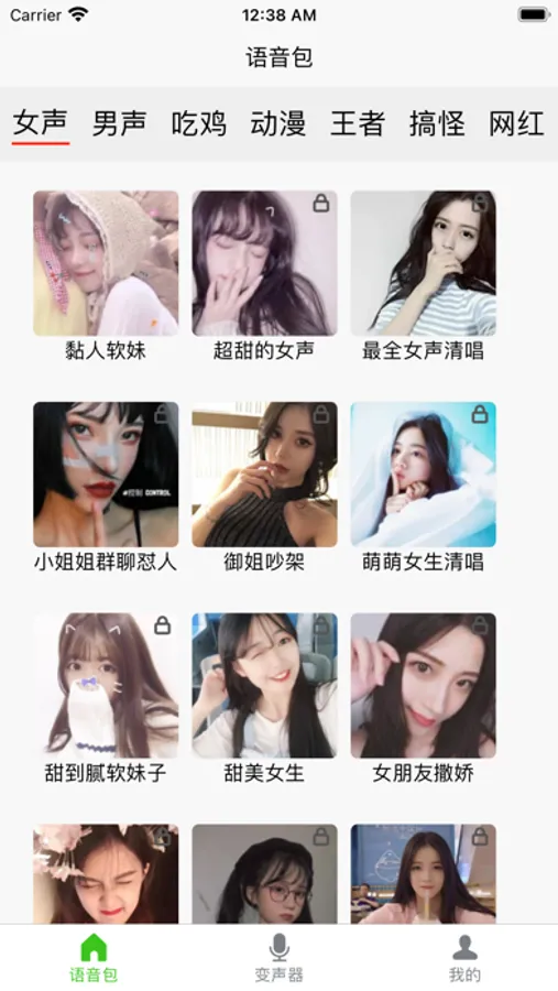 聊天用的各种语音包,李云龙、小猪佩奇、等精品语音包,变声功能上有男变女、女变男、小孩变型男,更精彩方言语音包