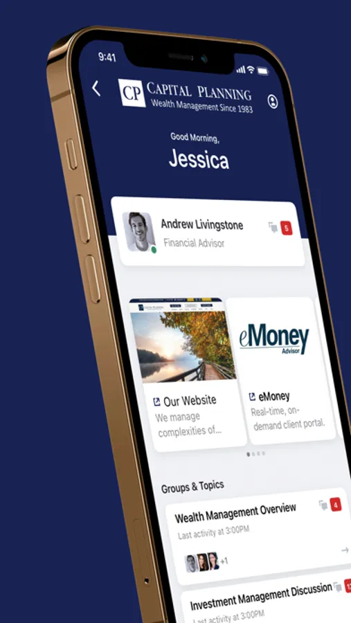 Capital Planning Connect enables our firm to be digitally available to our clients, no matter where they are. Use our app to connect with advisors and teams through text, voice, and video messaging, securely send files, schedule video conferences, digitally sign documents, and more.