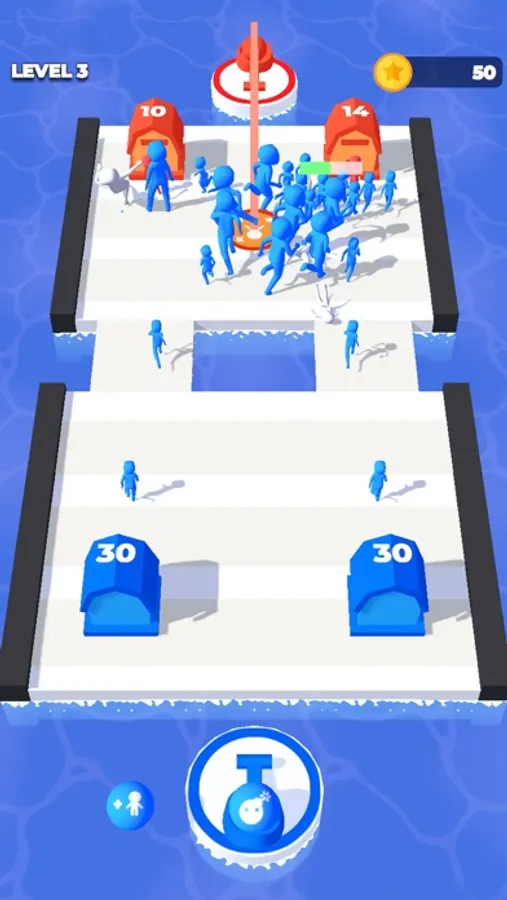 Throw a bomb, launch your people, power your troop or weaken your enemy.