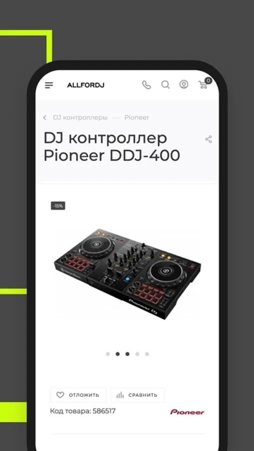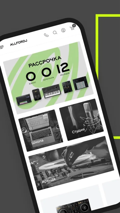 Приложение магазина-студия для диджеев и музыкантов с доставкой оборудования по России и СНГ.