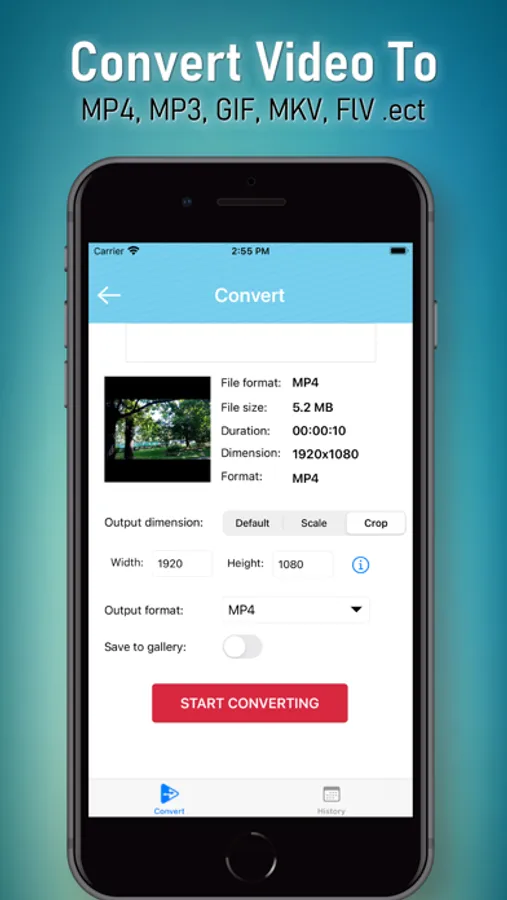 * Convert videos to mp4, mkv, avi, mov, mp3, gif and much more