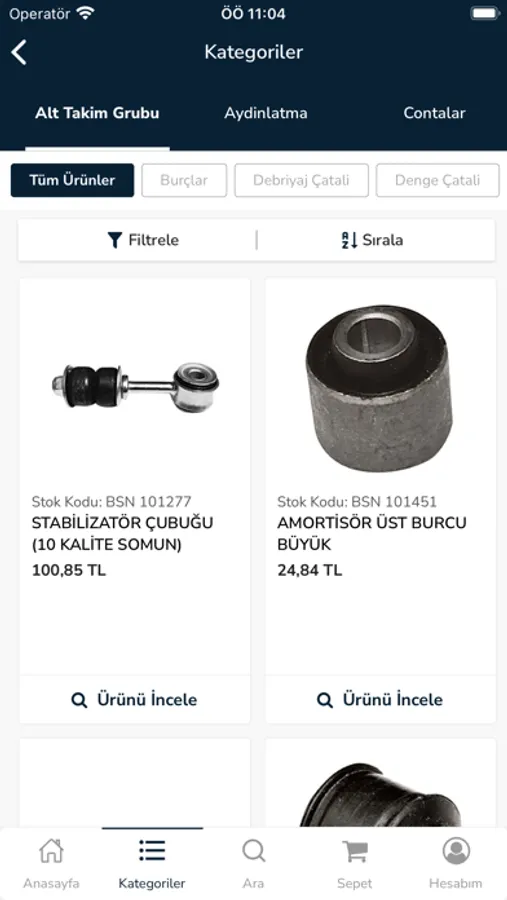 * Ürün kategorilerinde filtreleme yapabilirsiniz.