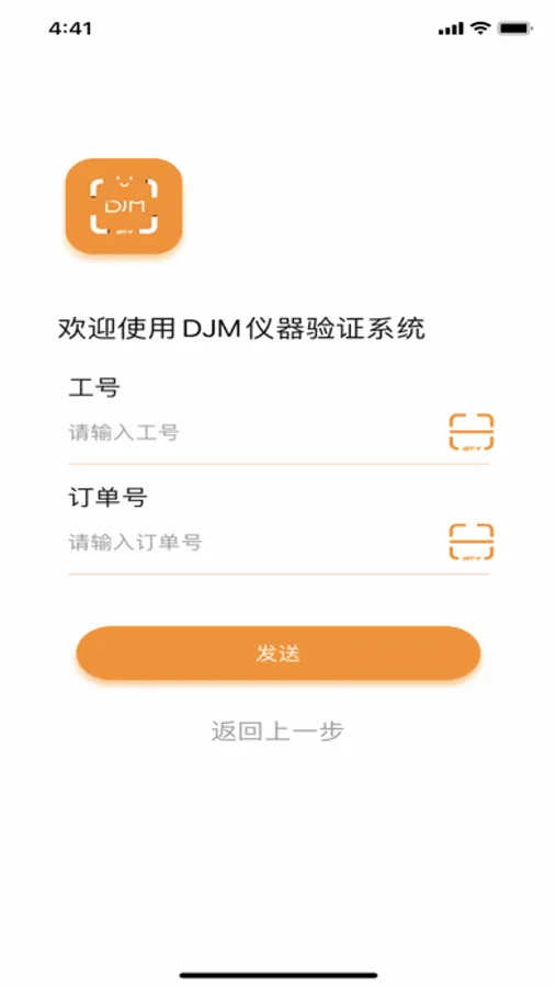 本APP需与DJM物联网仪器配合使用,先输入或者通过扫一扫的功能来获取仪器ID,仪器ID验证通过后,可继续验证工号、订单号,若工号、订单号验证成功,DJM物联网仪器则可解锁使用。