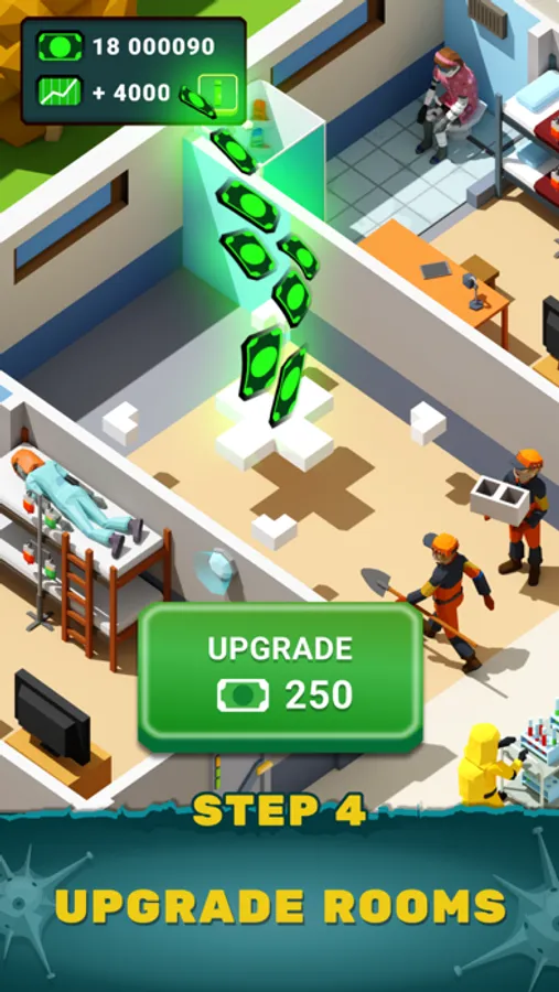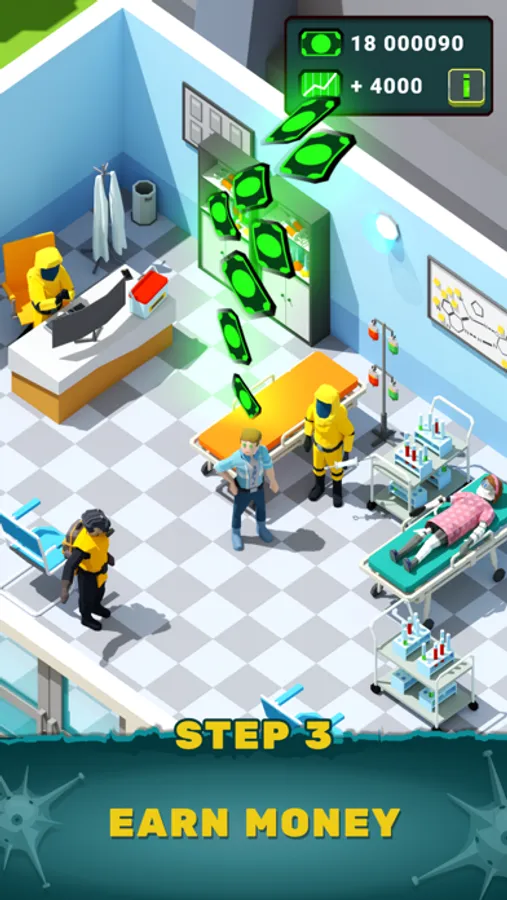 To treat your patients effectively you need to hire qualified personnel! Hire and fire various specialists in accordance with your development strategy and equip them with the best medical devices. Paramedics, scientists, therapists, builders, and janitors - all kinds of staff are essential. Each person is responsible for their own part of the difficult job of fighting with infection.