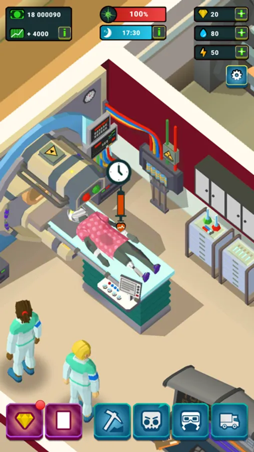 In this clicker game you can hire the personnel, create stuff buildings, cure the infected, and try to avoid bursts of aggression. Supply paramedics with high-quality devices, expand the recreation area and equip the command post. To make your clinic truly best overthink every detail, even the ventilation system set up. Invest your money smart.