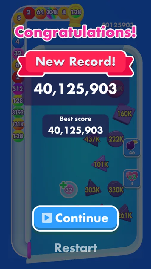 Drag your finger to aim, release to shoot. Destroy the obstacles at the bottom of the screen; if they reach the top, it's game over. And of course, if balls with same number touch, they'll merge and become more powerful.