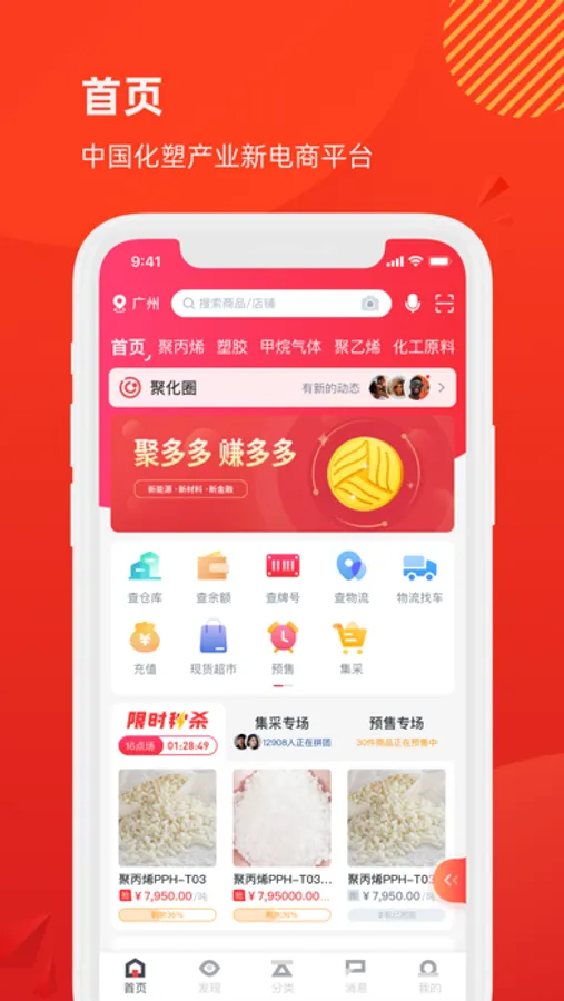 巨正源人立足于湾区化塑产业强大需求,一直在万物互联的未来“智造”高地上寻求新的突破,务求让客户在互联网和社交网络高度发达的时代中携手共同发展。在“互联网+制造业”的先进理念引领下,“聚多多电商” 应运而生。平台采用自营和第三方供应商灵活结合的B2B垂直商业运营模式,集聚品牌资源、产业互联优势,采用竞价、现货、预售、集采等多种灵活的营销手段,打造“一网共享”的化塑产业新生态。