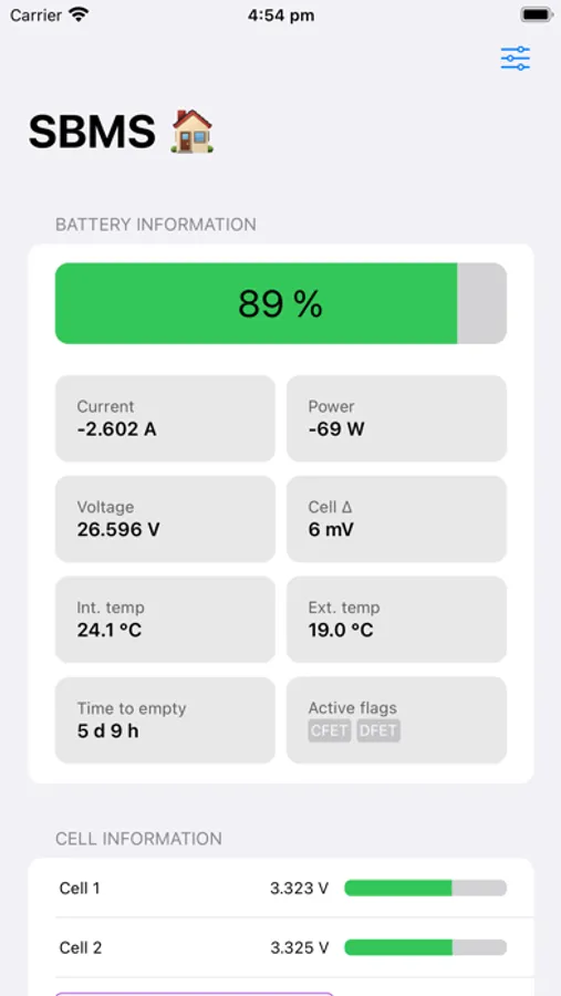A powerful yet simple companion to your Electrodacus SBMS. Use this to easily monitor the state of charge, cell level voltages, historical charge and loads + many more details with this easy to use app.