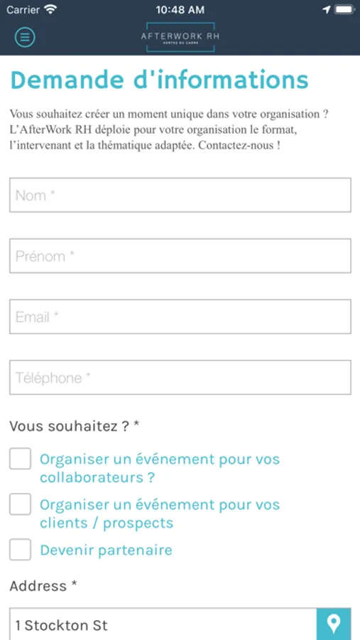 Pour nous rejoindre l'application contactez-nous https://afterworkrh.com/contact-2