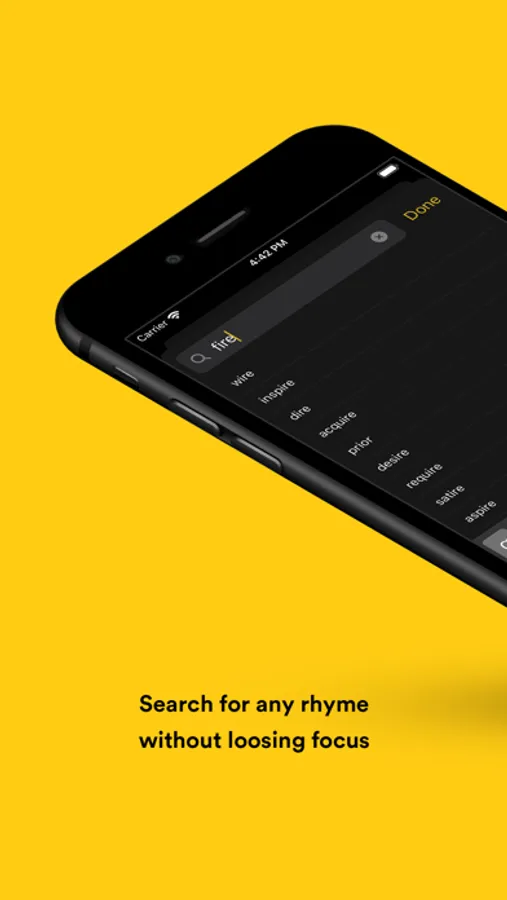 Built-in rhyme search will provide you hundreds and hundreds of rhymes. Quickly switch between your text and rhyme search.