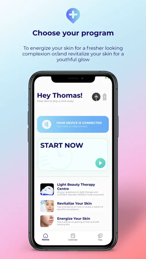Our bespoke LUSTRE® ClearSkin app allows you to take your skincare experience to the next level, giving you the opportunity to personalize your sessions.