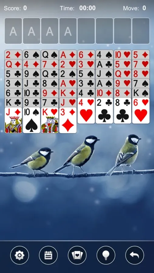 FreeCell Solitaire adds a new element of strategy & puzzles to the classic solitaire card game formula.The goal of the game is to move all the cards to the four Foundation piles (located in the top left) and build each suit up from Ace to King. When playing, use the four open cells to store cards as you are trying to win.